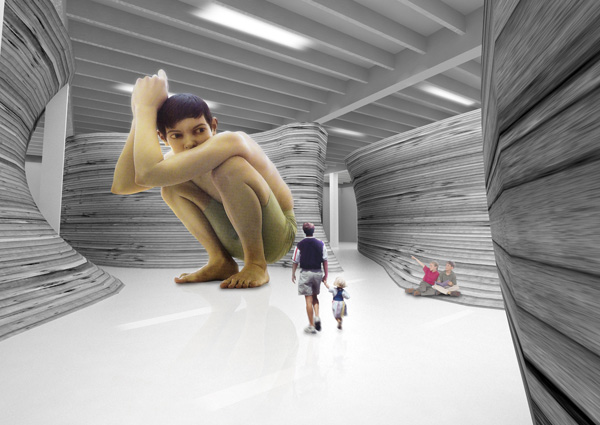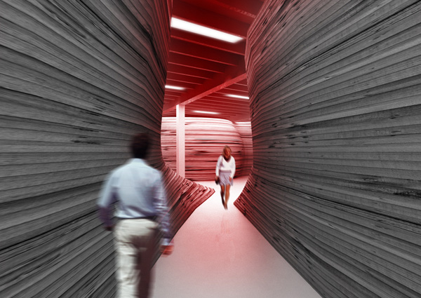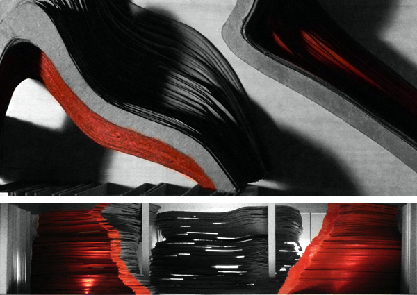 Between the Gropius and Mies years at Bauhaus, Meyer held the chairmanship of the school. The scheme accepts the actualities of the site and reorganizes their presence as a non-neutral field of possibilities. The mapping of paths and uses in the space anticipates fluctuating and evolving uses. Opposed to his predecessor’s notion of an architecture of an organic whole or total work of art, Meyer offered an idea of co-op interventions that produces experiential effects. It is the mapping of existing conditions, working processes and operations and production of effects. The Co-Op Bau is conceived as an apparatus that allows for events of creativity and collective dialogue.
